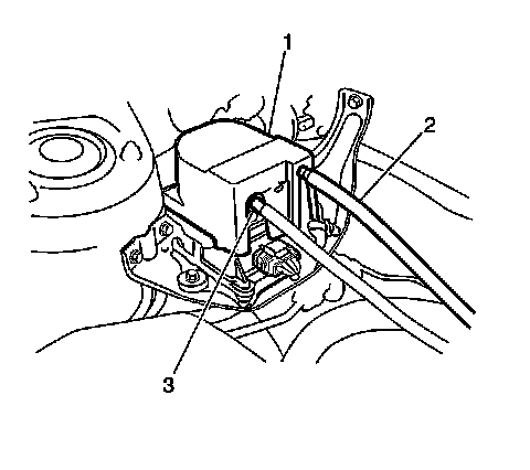 4. Connect the accelerator pedal cable (3) to the actuator lever (1). Rotating the actuator lever (1) by hand will aide in accelerator pedal cable installation.