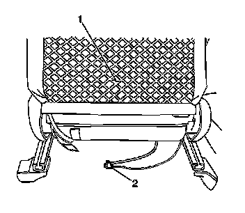 2. Position the front seat (1) in a forward position in order to gain access to the seat belt switch electrical connector (2).
