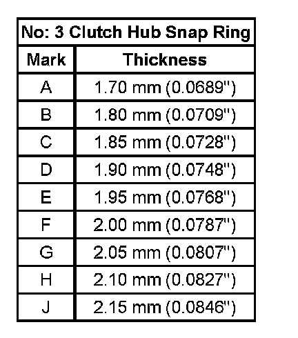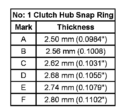 Transaxle Specifications (Selective Snap Ring Table)Output Shaft Rear Bearing Snap Ring:
