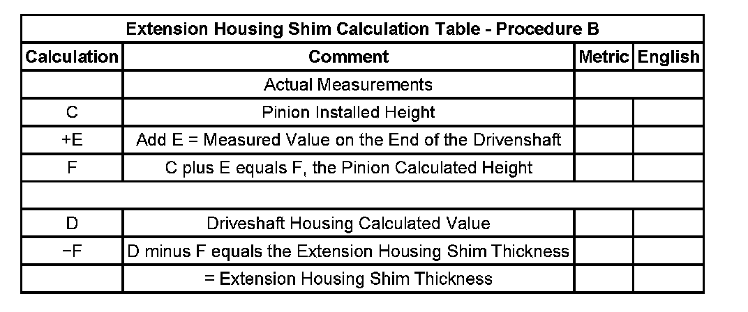 Extension Housing Shim Calculation Table - Procedure B: