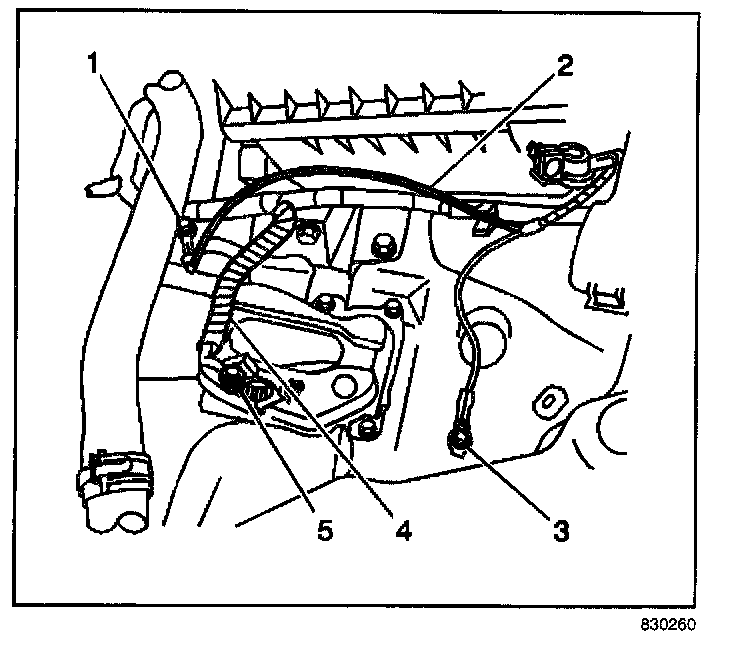 4. Separate the positive (+) battery cable (4) from the battery positive fuse block feed cable.