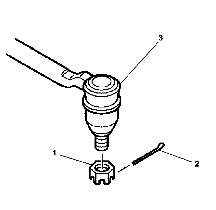 ^ Tighten the outer tie rod nut to 49 Nm (36 ft. lbs.). Tighten the nut up to 1/6 additional turn in order to insert the cotter pin.