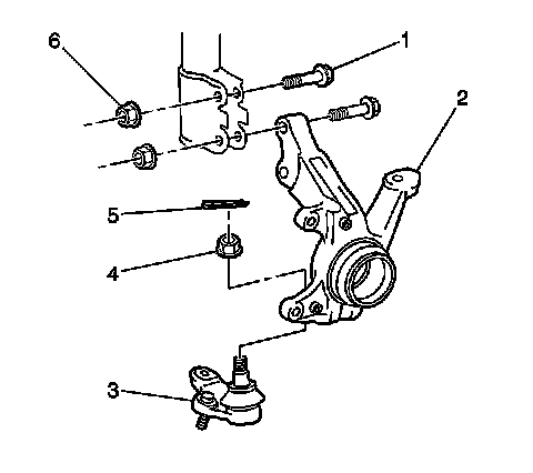1. Install the ball joint (3) and the nut (4) to the steering knuckle (2).
