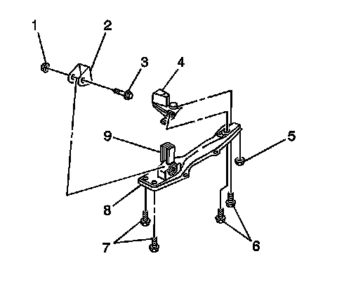 8. Install the bolt (3) and nut (1), to the front transmission mount (9) and bracket (2).