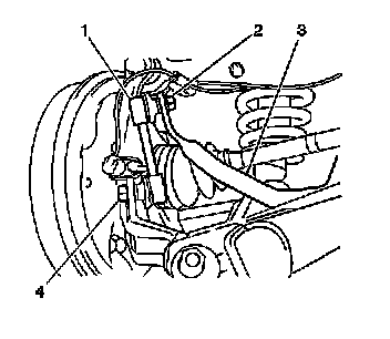3. Install the bolt (3) and the nut (2) in order to retain the knuckle to the upper control arm (1).