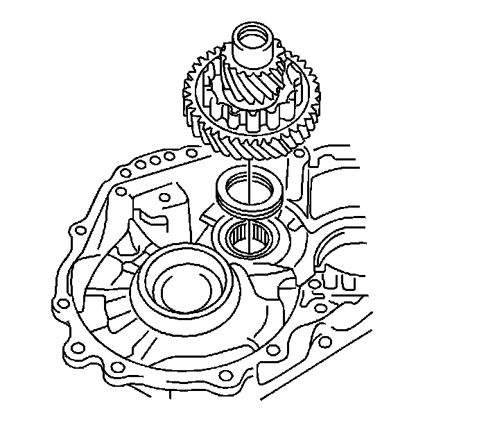 114. Using a bearing puller and slide hammer, remove the 2 right side counter drive gear bearing inner races from the transaxle case.