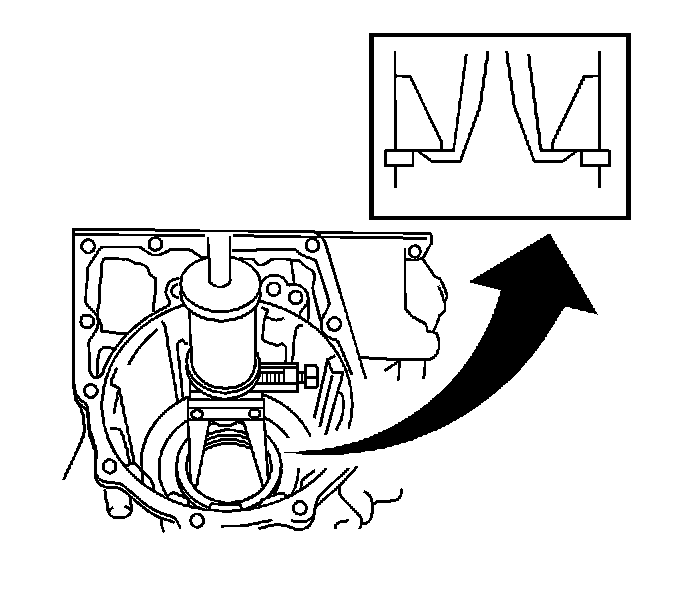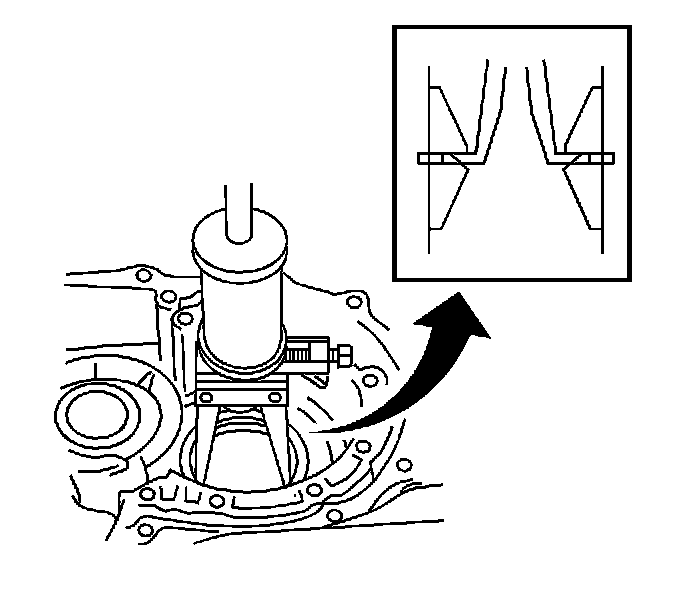 115. Using a bearing puller and slide hammer, remove the left side counter drive gear bearing outer race from the transaxle case.