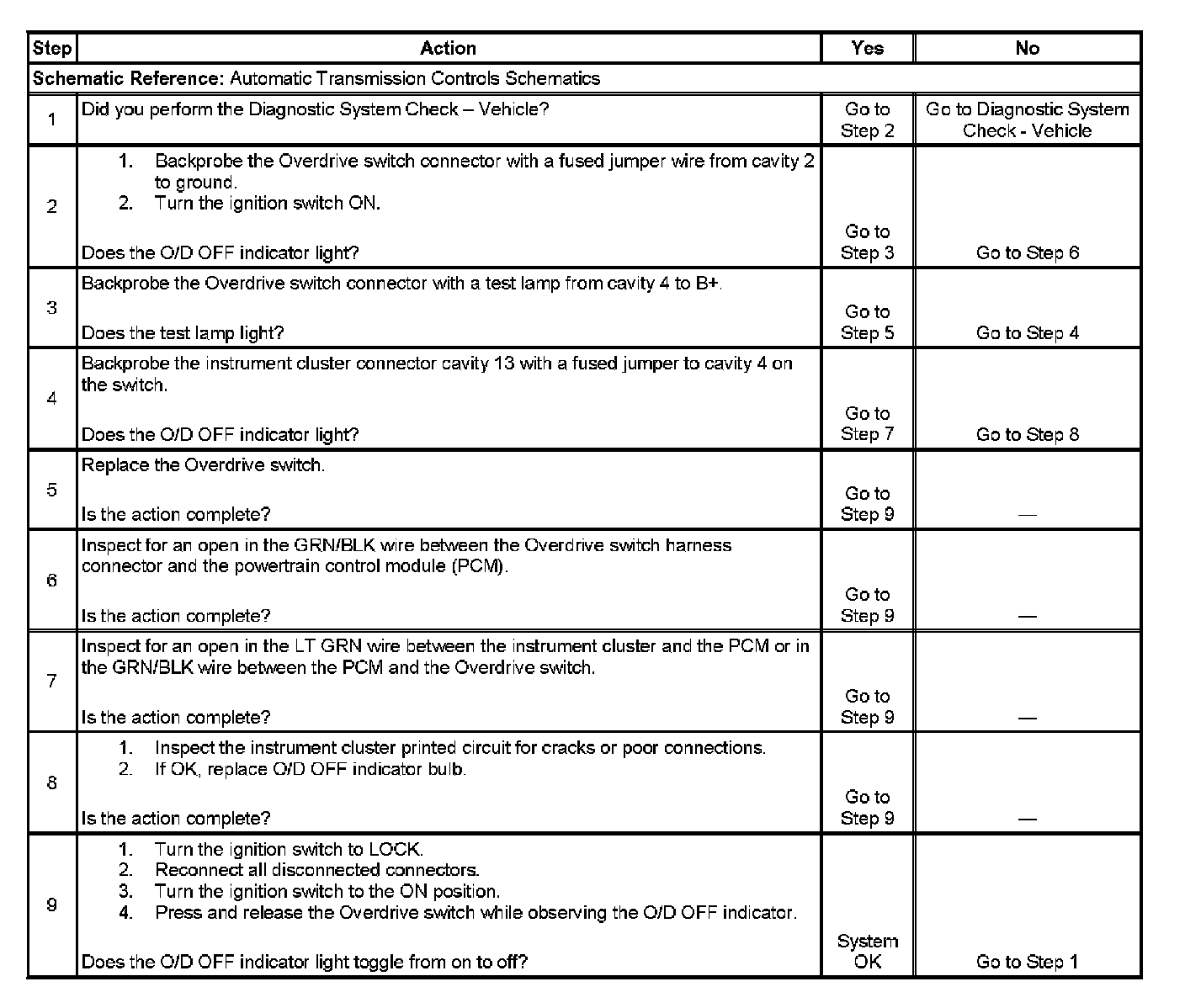 2. This step checks the O/D OFF indicator light by jumping the switch to ground.