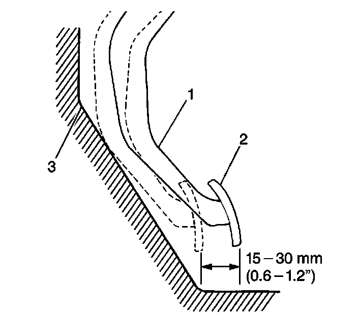 4. Depress the clutch pedal (2) to the floor (3). Return the clutch pedal within 15 - 30 mm (0.6 - 1.2 inch) from the floor.