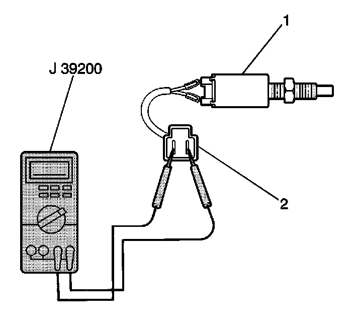 5. Adjust the probes of J 39200 in contact with both leads of the CPP switch electrical connector (2).