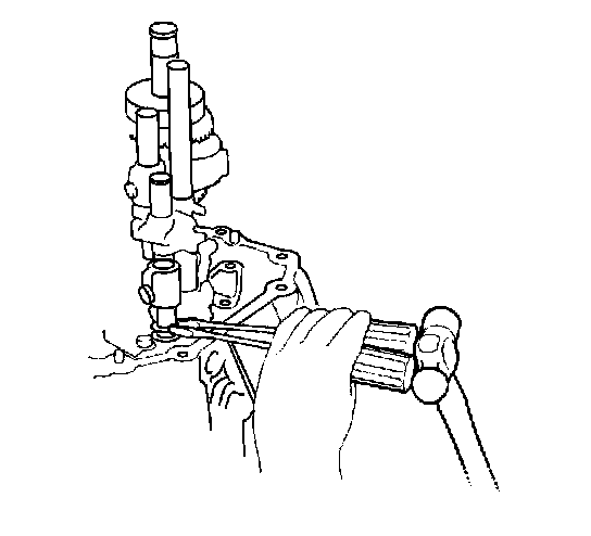 27. Use two screwdrivers and a hammer to remove the snap ring from the number 2 shift fork shaft.