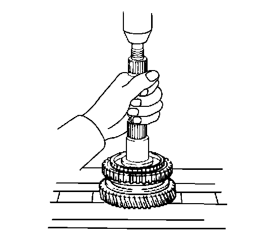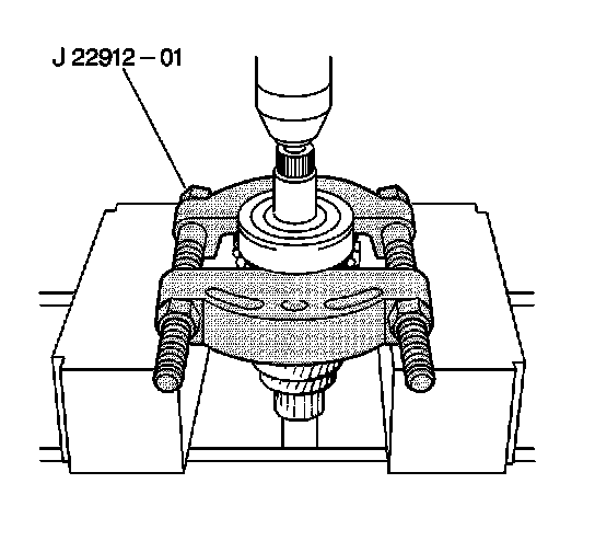 22. Use the J 22912-01 and the J 8433-1 to remove the fifth drive gear.