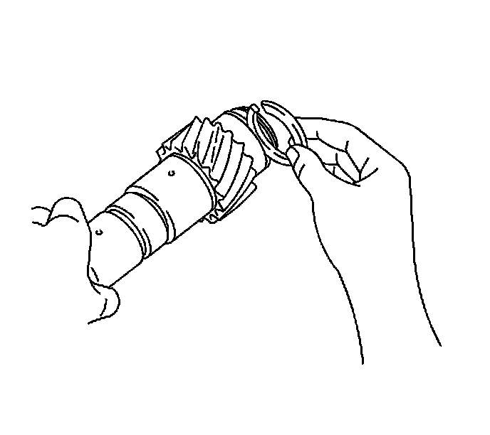 9. Check the 1st gear braking action of the synchronizer ring. Turn the synchronizer ring in one direction while pushing it into the gear cone. Ensure that the ring locks. Replace the ring if necessary.