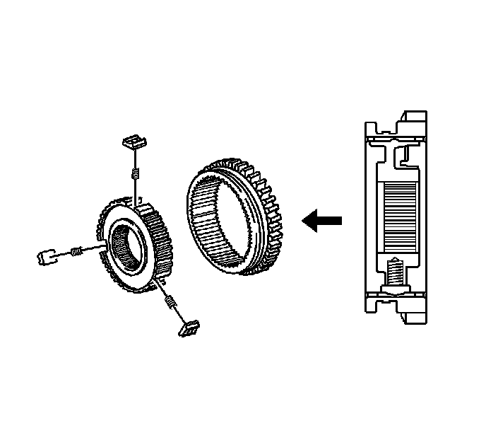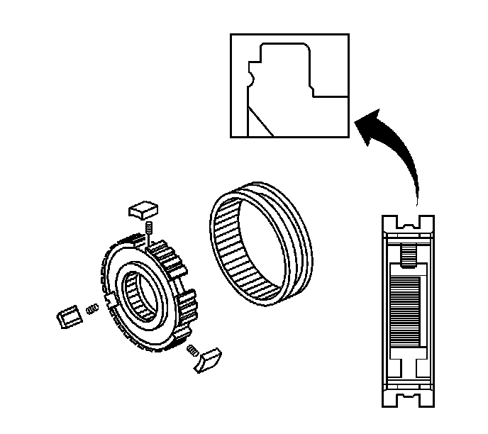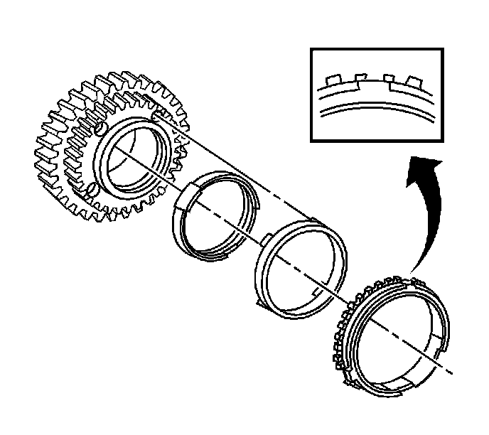 34. Place the No.2 4th gear synchronizer ring on the No.2 Hub sleeve assembly and align the No.2 synchronizer ring slots with the No.2 shifting keys.
