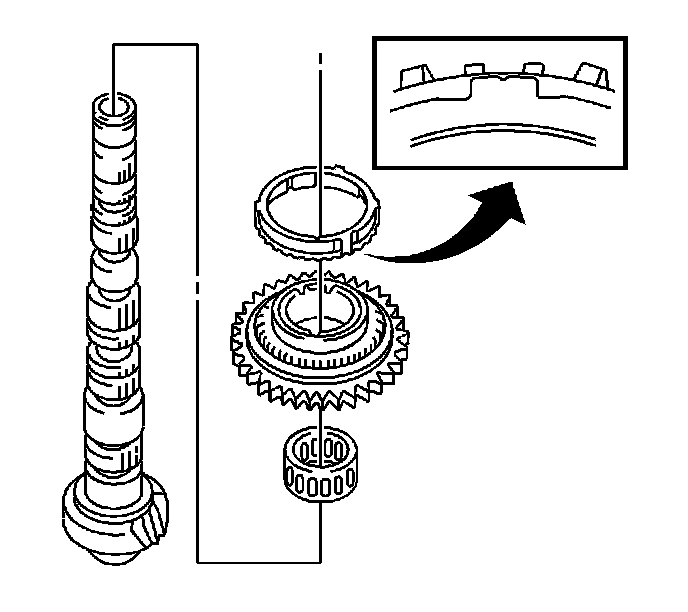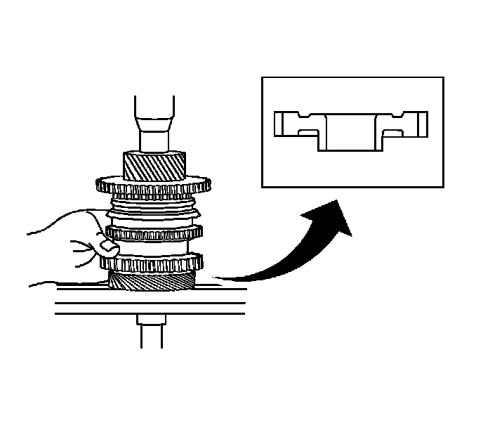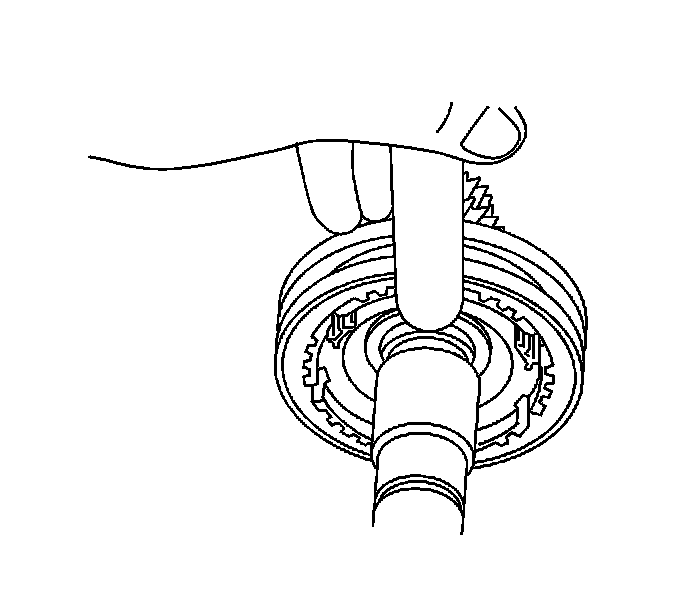 7. Check the 2nd gear braking action of the synchronizer ring. Turn the synchronizer ring in one direction while pushing it into the gear cone. Ensure that the ring locks. Replace the ring if necessary.