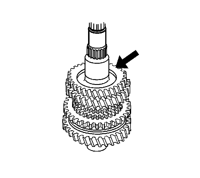 6. Using a feeler gage, measure the clearance between the synchronizer ring and the gear spline end. Minimum clearance is 0.70 mm (0.0276 inch). If the clearance is less than the minimum, replace the synchronizer ring.