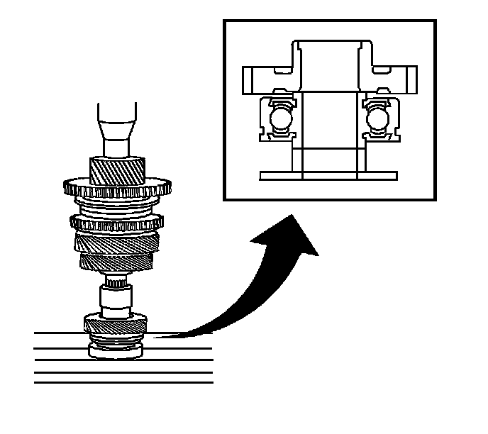 26. Using a press, install the radial ball bearing and the 4th driven gear to the output shaft.
