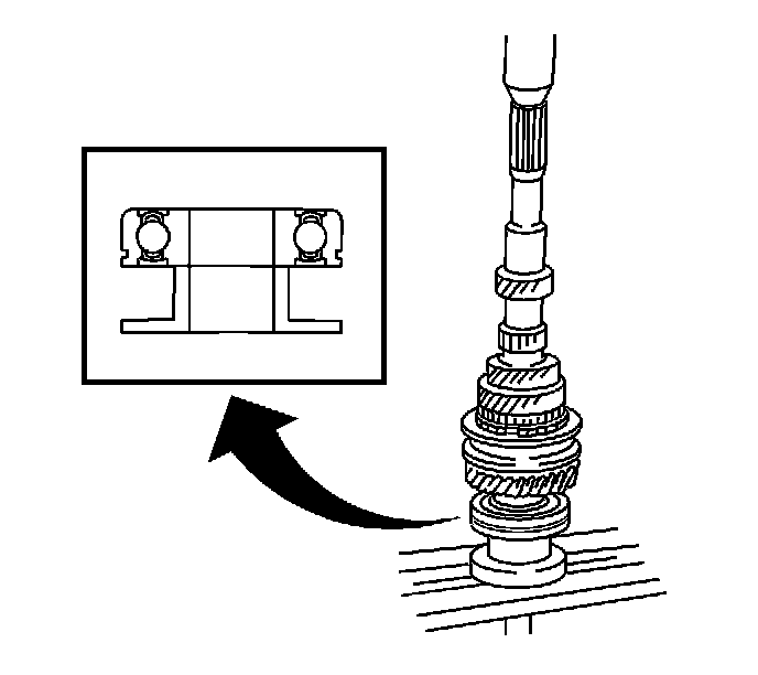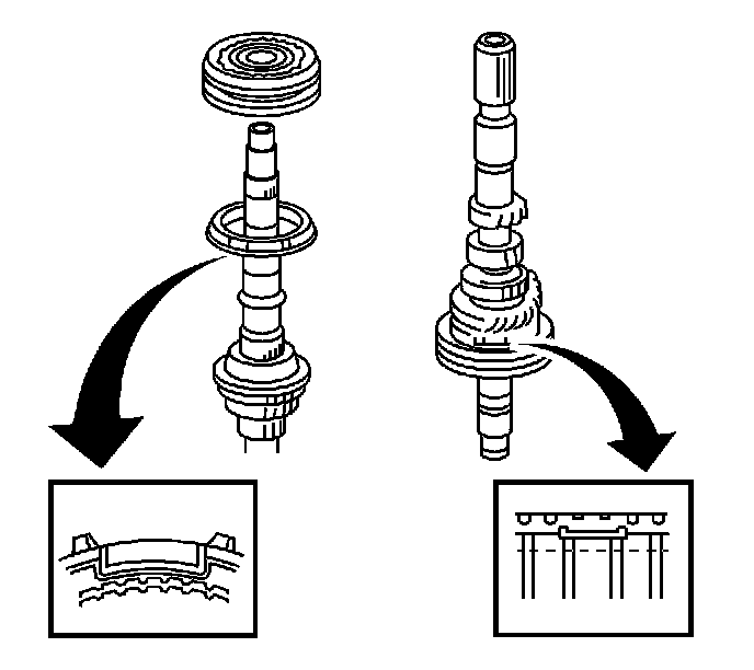11. Install the snap ring to the output shaft. Select a snap ring that will make the thrust clearance of the front bearing inner race less than 0.1 mm (0.004 inch).