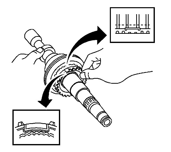 33. Using a brass bar and hammer, install the No.2 hub sleeve snap ring.