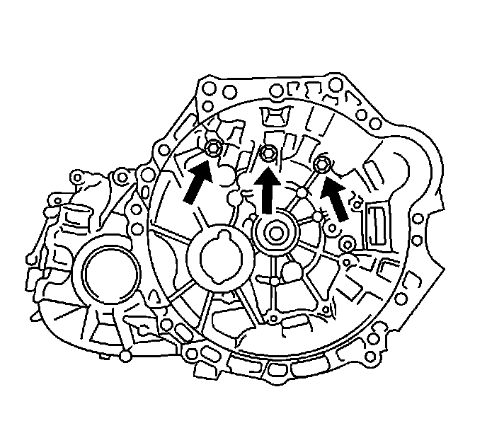 75. Install the 3 transmission case retaining bolts.