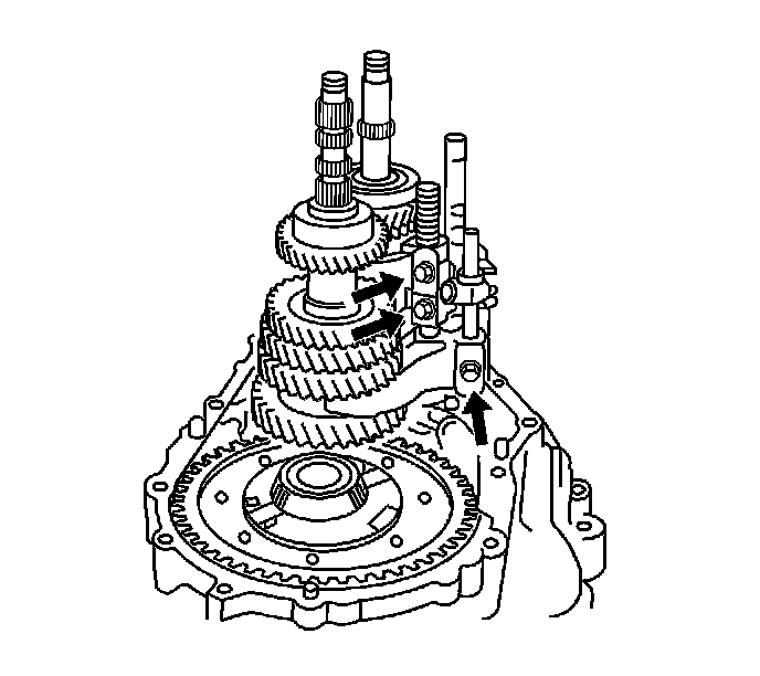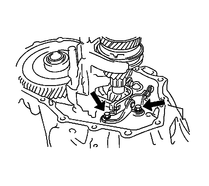 70. Install the 2 reverse shift arm bracket, then install the bracket retaining bolts.