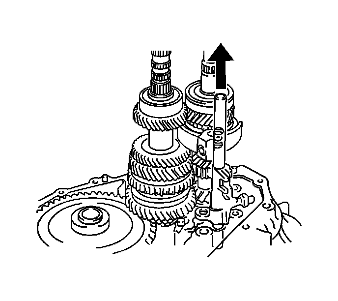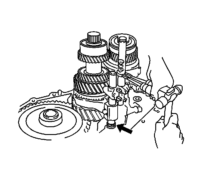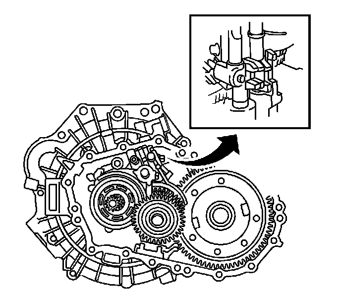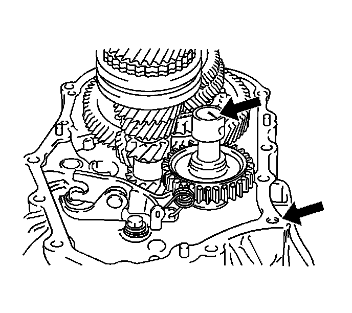 68. Set the pin on the top of the reverse shift arm into the groove on the reverse idler gear.