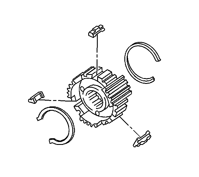 49. Using a feeler gage, measure the clearance between the synchronizer ring and the gear spline end. Minimum clearance is 0.75 mm (0.0295 inch). If the clearance is less than the minimum, replace the synchronizer ring.