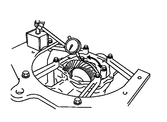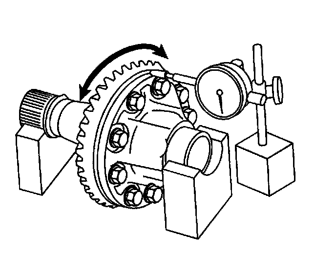 38. Using a dial indicator, check the runout of the ring gear mounting case.