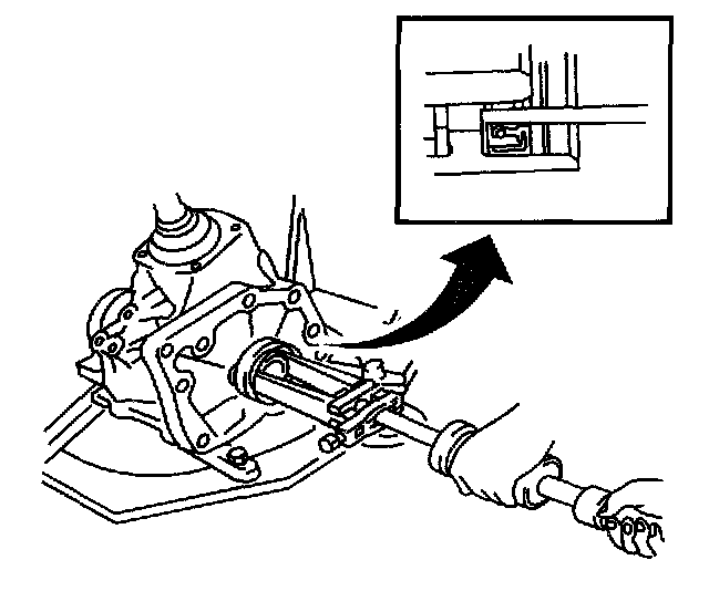 33. Using a brass bar and hammer, remove the right outer race from the transfer case.