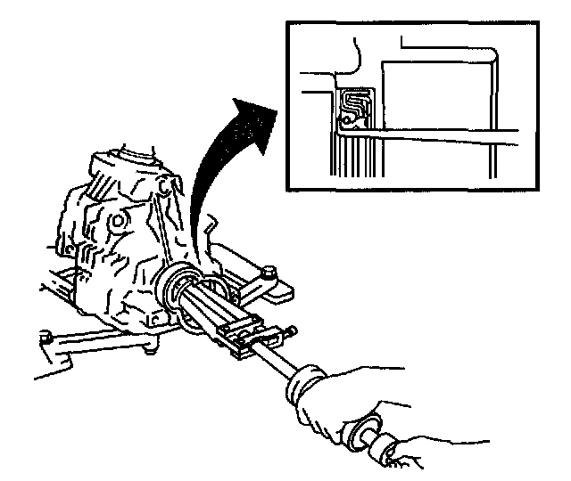 30. Using a brass bar and a hammer, remove the drive pinion bearing race from the transfer case.