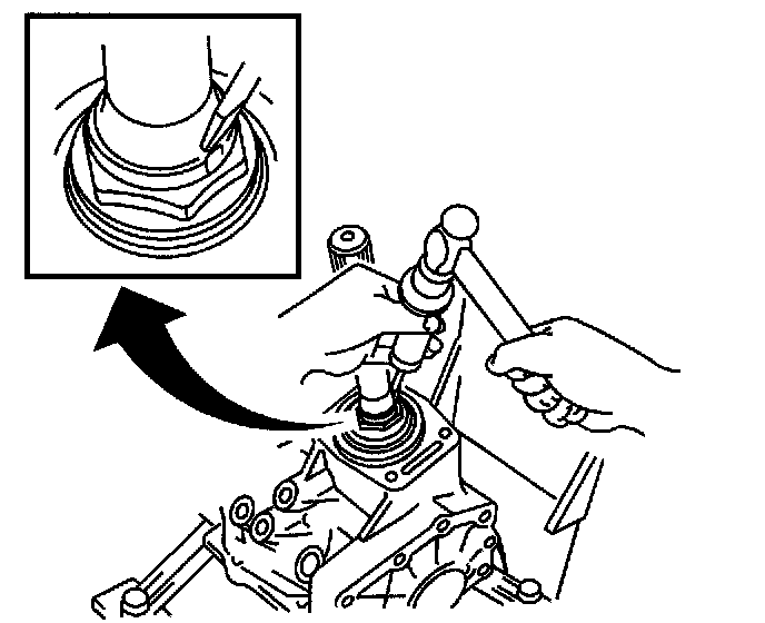 26. Using a punch and a hammer, unstake the drive pinion nut.
