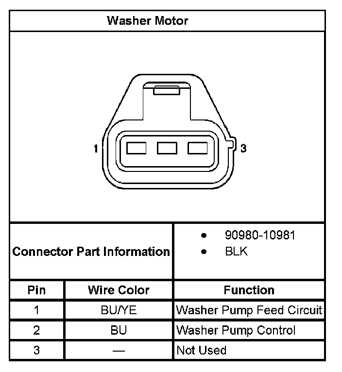 Windshield Washer Motor: Diagrams