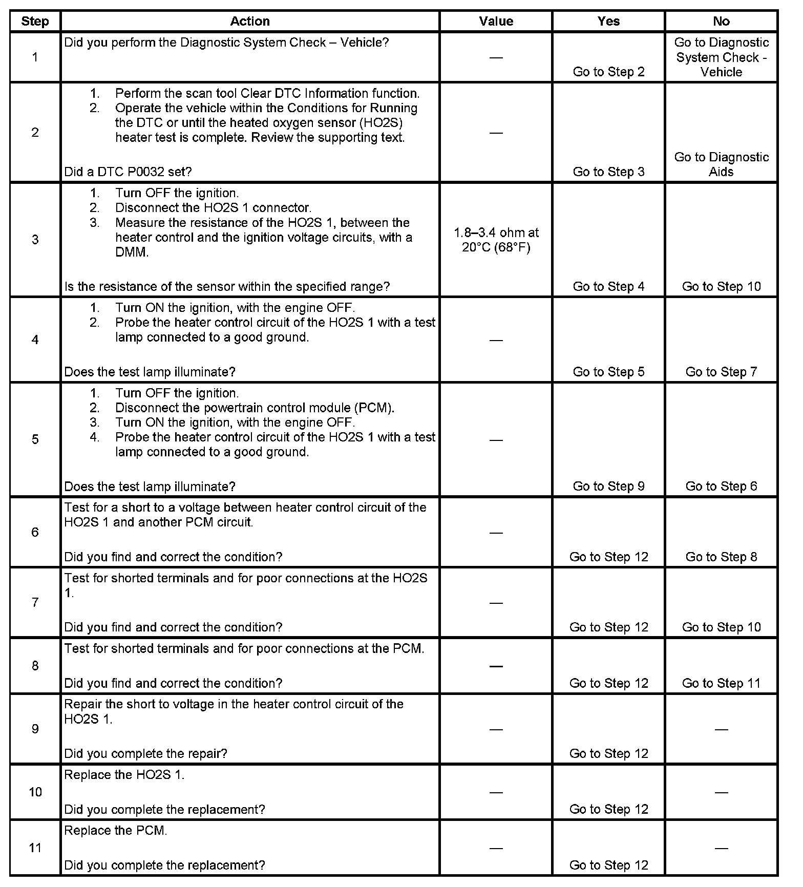 - The HO2S heater diagnostic checks for many of the faults that can cause DTC P0032 to set. If the HO2S heater test passes, the cause of the DTC is probably intermittent. Clear the DTC information. Road test the vehicle while monitoring the HO2S heater test in the I/M System Information selection on the scan tool. When the HO2S heater test indicates complete with a YES status, check for a DTC P0032 under Last Test Failed. If there is no DTC P0032 indicated, the DTC is intermittent and the HO2S heater diagnostic is indicating OK at this time.