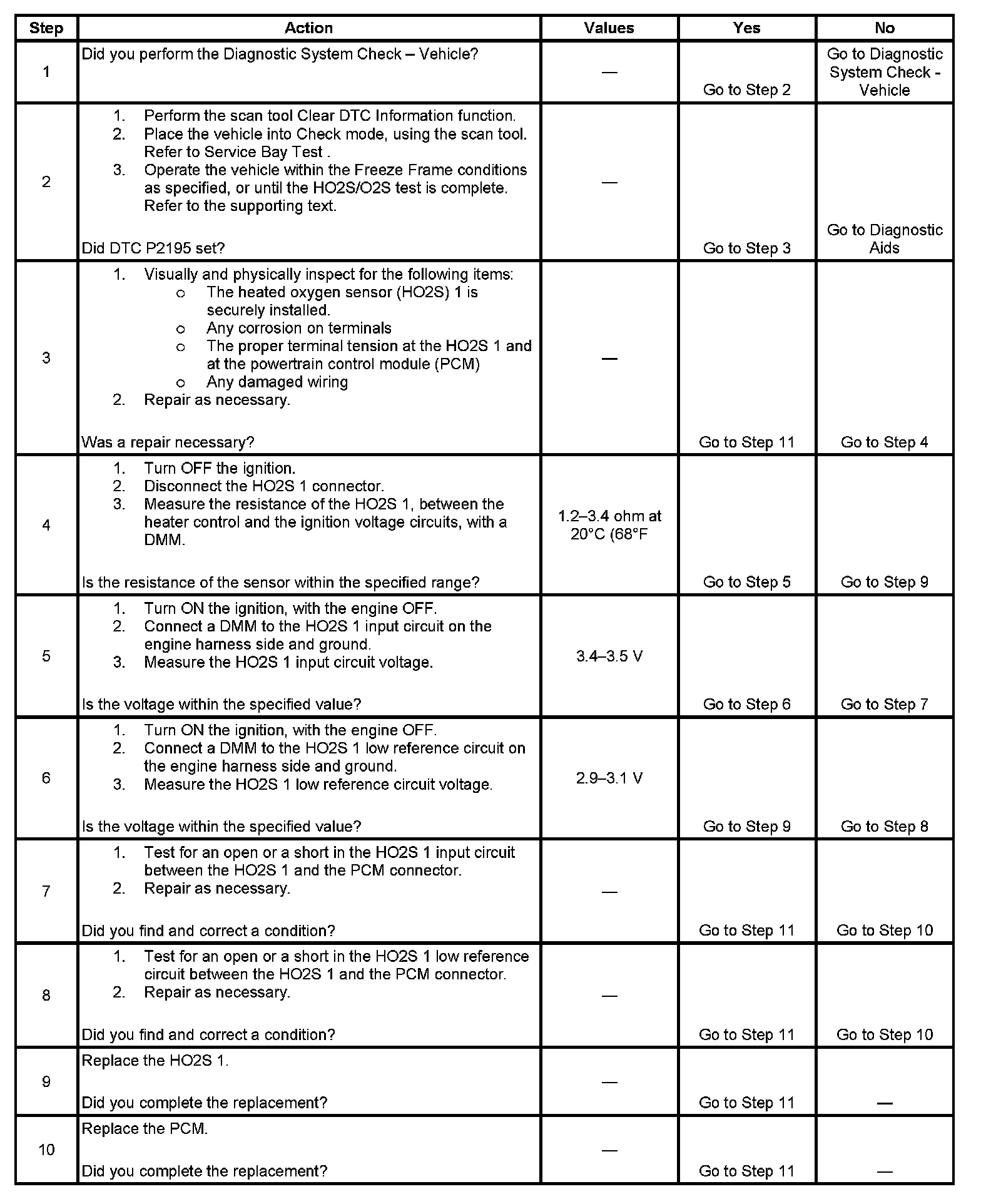 - An incorrect fuel pressure-The fuel system can go lean if the fuel pressure is too low and DTC P2195 may be set. Refer to Fuel System Diagnosis. Component Tests and General Diagnostics