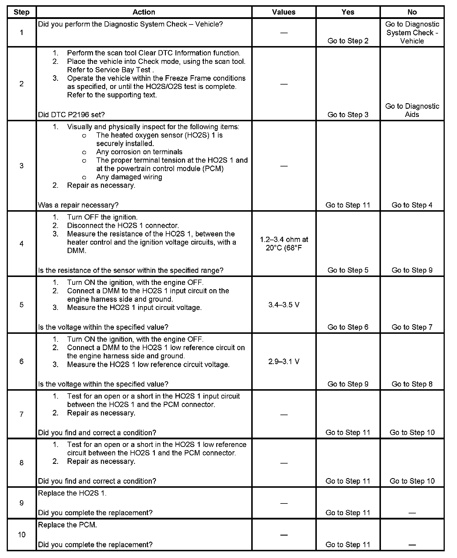 - An incorrect fuel pressure-The fuel system can go rich if the fuel pressure is too high and DTC P2196 may be set. Refer to Fuel System Diagnosis. Component Tests and General Diagnostics