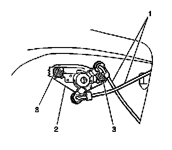 1. Install the endgate lock cylinder (2) to the liftgate.