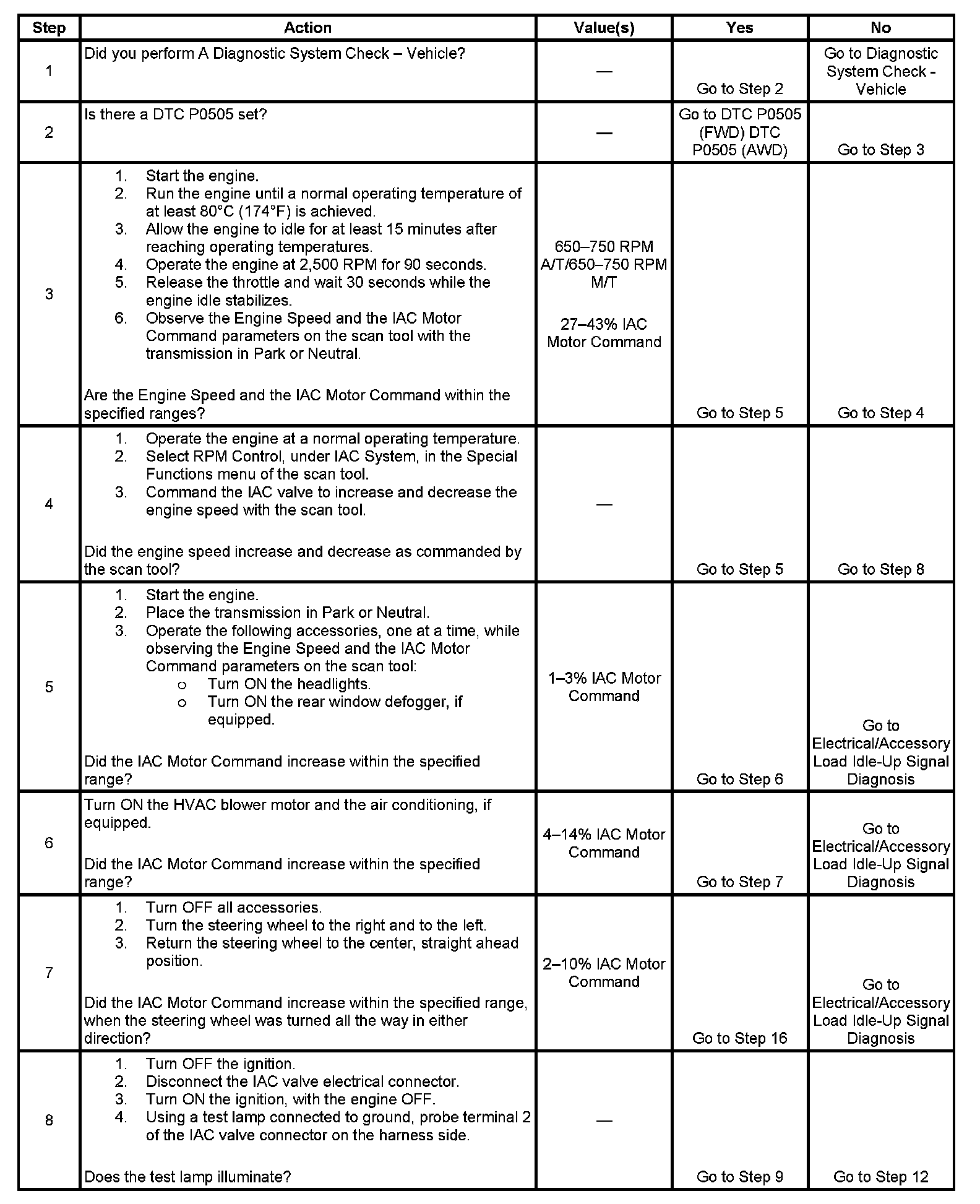 Idle Air Control (IAC) System Diagnosis