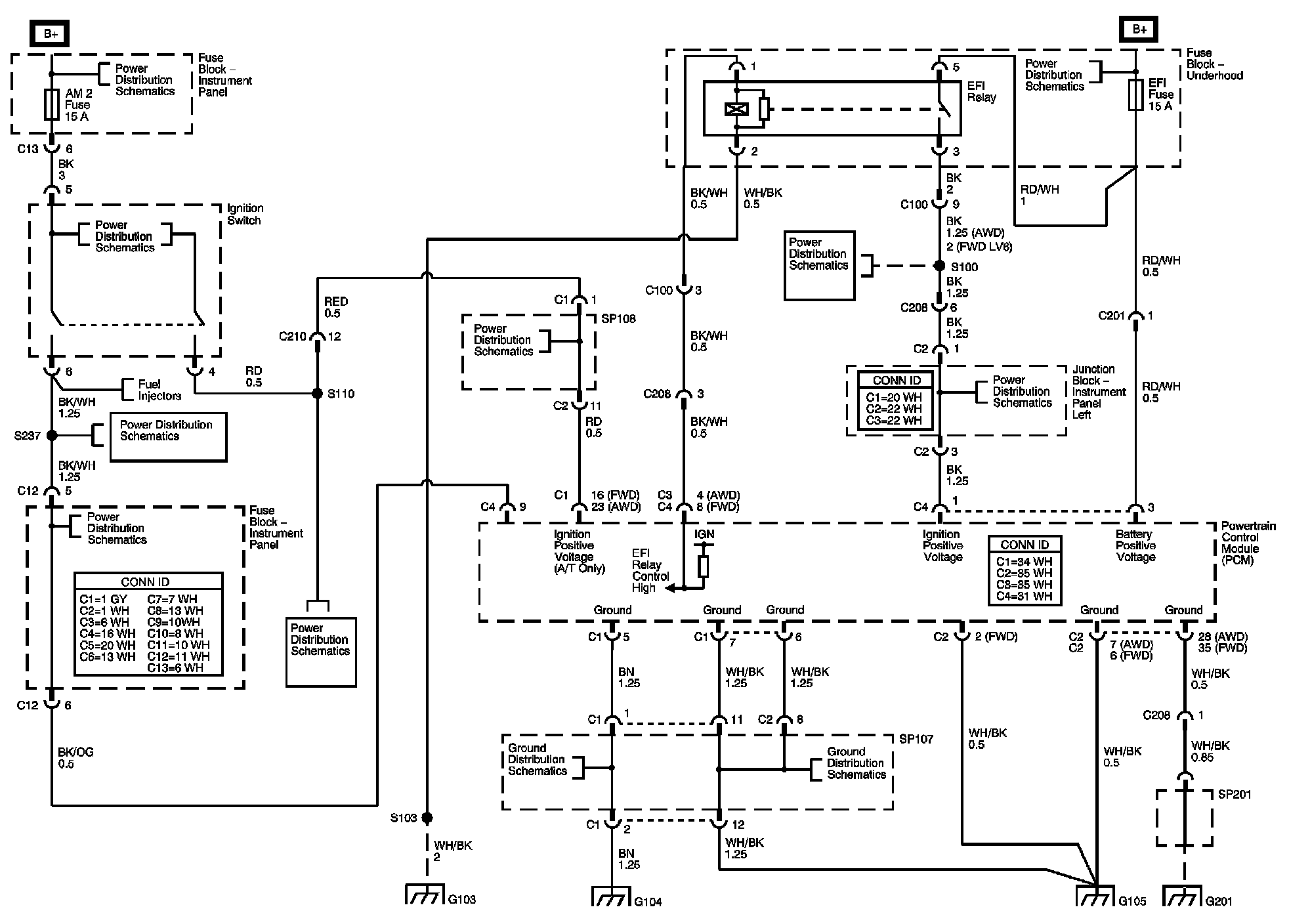 Locations: The locations for the Connectors, Grounds, Splices, and Grommets shown within these diagrams can be found via their numbers at at Vehicle Locations.