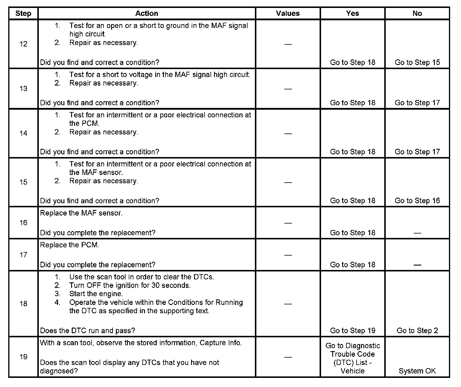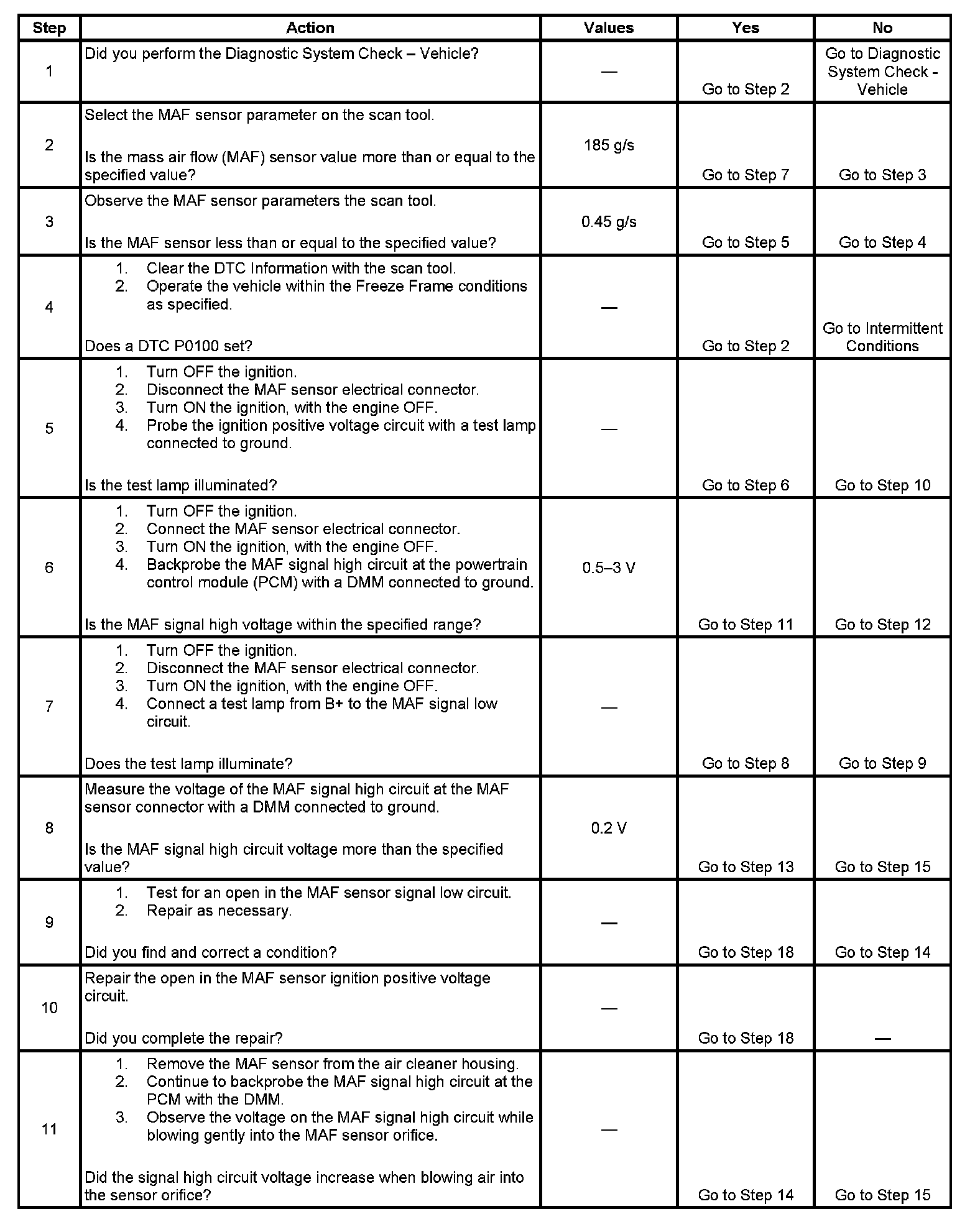 3. This step checks for a low input signal from the MAF sensor.