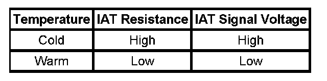 The DTC P0110 Intake Air Temperature (IAT) Sensor Circuit diagnostic detects an out of range sensor signal. The IAT sensor is a thermistor that is an integral part of the mass air flow (MAF) sensor. The electrical resistance of the IAT sensor is high when the air temperature is cold, and the resistance is low when the air temperature is warm. The IAT sensor is wired in series with a fixed resistor located in the powertrain control module (PCM). The PCM applies 5 volts to the IAT sensor. The PCM monitors the voltage across the IAT sensor and converts the voltage into a temperature reading. The voltage measured by the PCM will be high when the air temperature is cold, and low when the air temperature is warm.