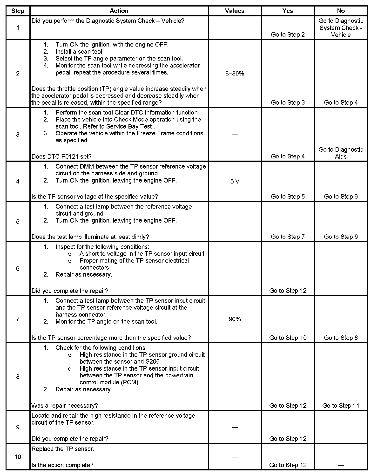 DTC P0121 Throttle Position (TP) Sensor Performance
