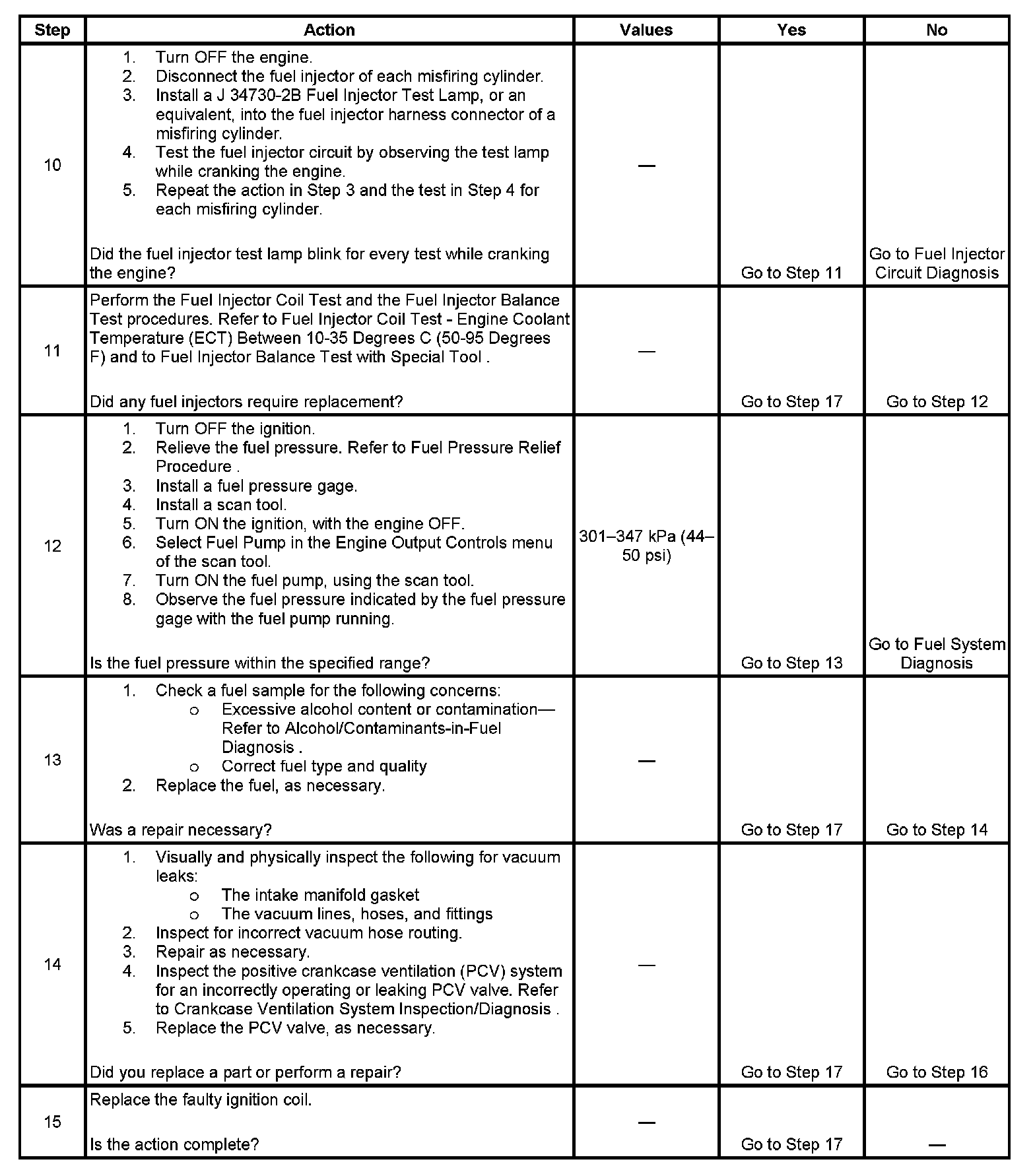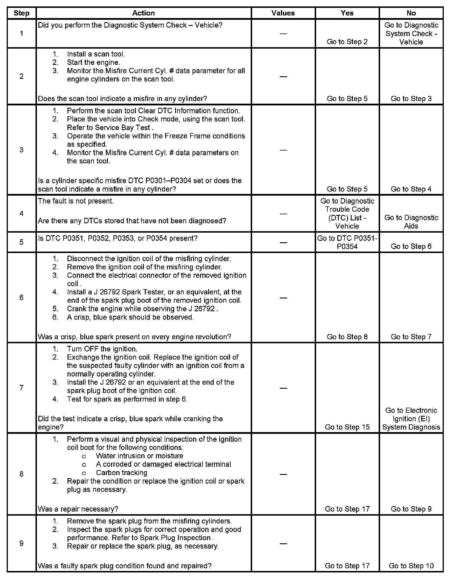 4. Fault not present indicates that the condition that caused the DTC P0301-P0304 to set is intermittent and not currently present. If no other DTCs are stored, refer to Diagnostic Aids for additional information on diagnosing an intermittent DTC P0301-P0304.