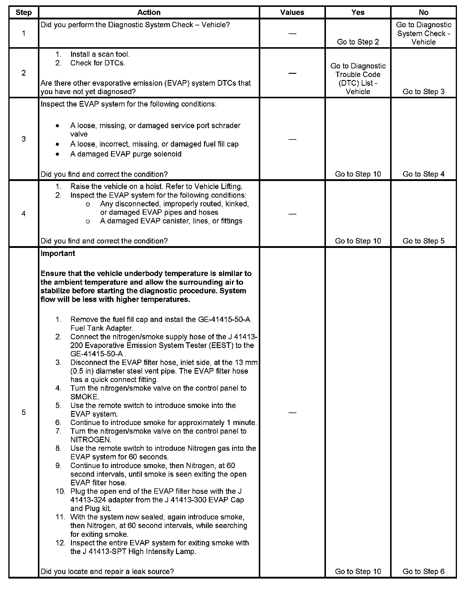 11. This step uses the EVAP Service Bay test in order to verify the correct operation of the EVAP canister purge solenoid, vent solenoid, and the other EVAP system components. Performing the EVAP Service Bay test also tests for EVAP system leaks. Service Bay Test