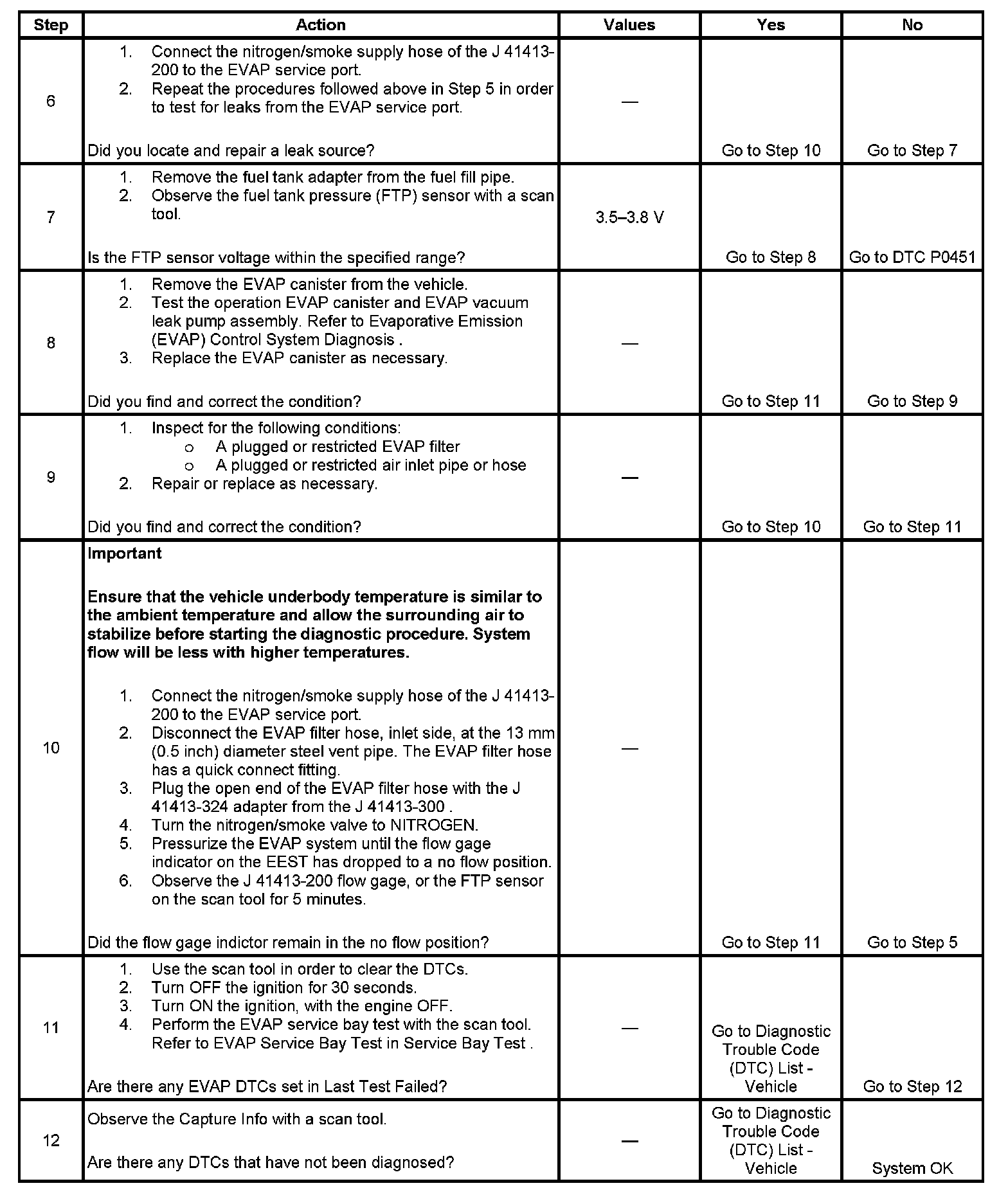 7. This test verifies that the FTP sensor is accurate. The FTP sensor should indicate little or no pressure with fuel fill pipe open. An FTP sensor that does not correctly respond to vacuum, or pressure may cause this DTC to set.
