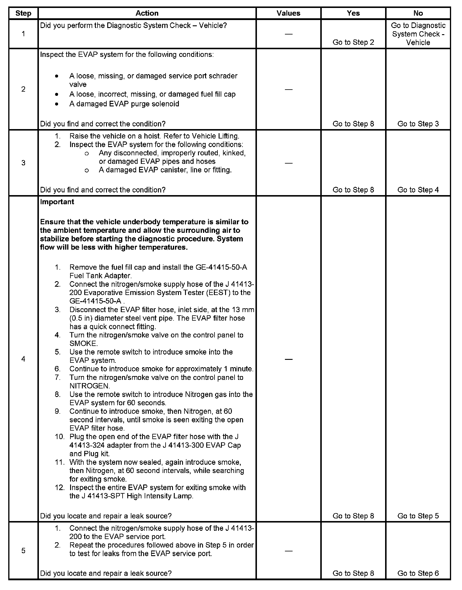 - In order to help locate intermittent leaks, use the J 41413-200 Evaporative Emissions System Tester (EEST) to introduce smoke into the EVAP system. Move all EVAP components while observing smoke with the J 41413-SPT High Intensity Lamp.