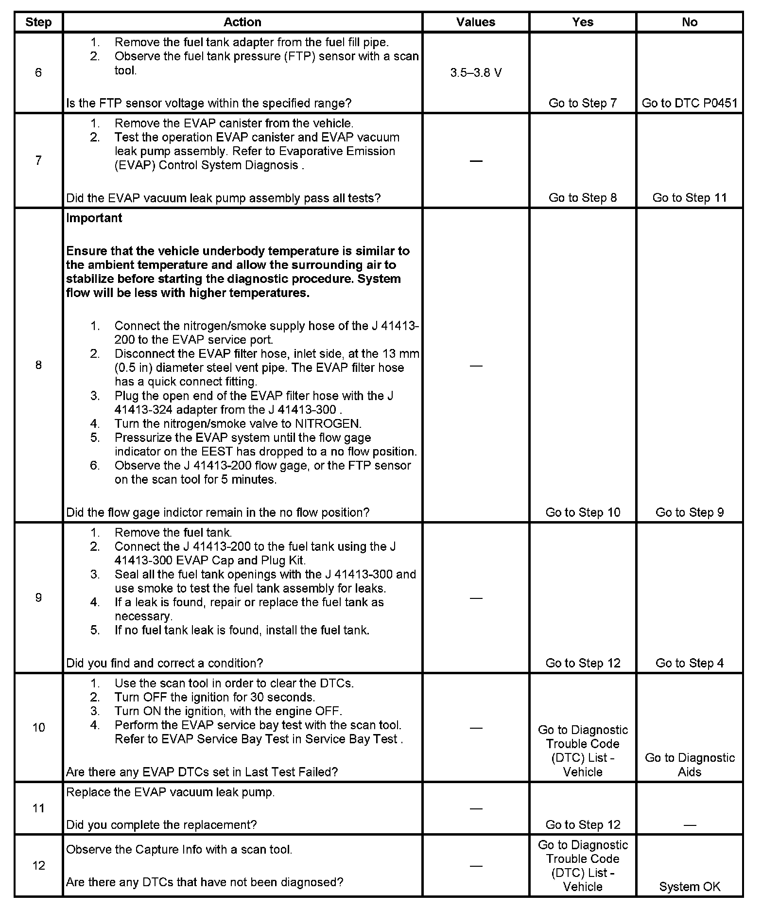 7. This step tests the operation of the EVAP vent solenoid located in the EVAP vacuum leak pump assembly. If the vent solenoid passage leaks, the EVAP system leak diagnostic will fail and set a DTC. This internal leak is not detected using the J 41413-200 EEST.
