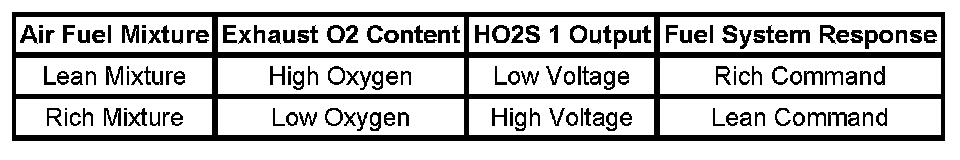 - The scan tool output control feature, Fuel Injector Modification, can be used at idle to check the oxygen sensor performance. Increasing the Fuel Injector Modification Commanded State to 25 percent should cause the HO2S 1 voltage to exceed 800 mV. Decreasing the Fuel Injector Modification Commanded State to -12 percent should cause the HO2S 1 voltage to drop to less than 100 mV. An oxygen sensor that fails to respond accordingly may be faulty or contaminated. When performing a Fuel Injector Modification with the scan tool, the Loop Status will remain Open Loop and the Short Term FT will be fixed at 0 percent.