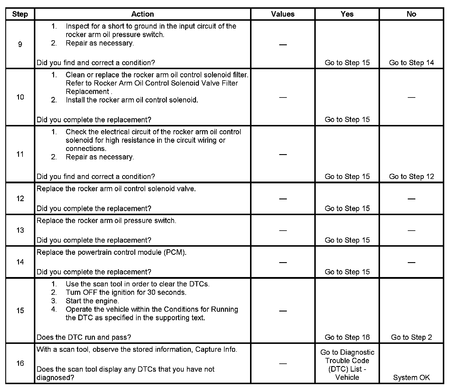 11. This step checks for electrical resistance in the wiring and connections of the rocker arm oil control solenoid circuit. Circuit resistance as small as 25 ohms can cause the solenoid to malfunction and a DTC P2646 to set.