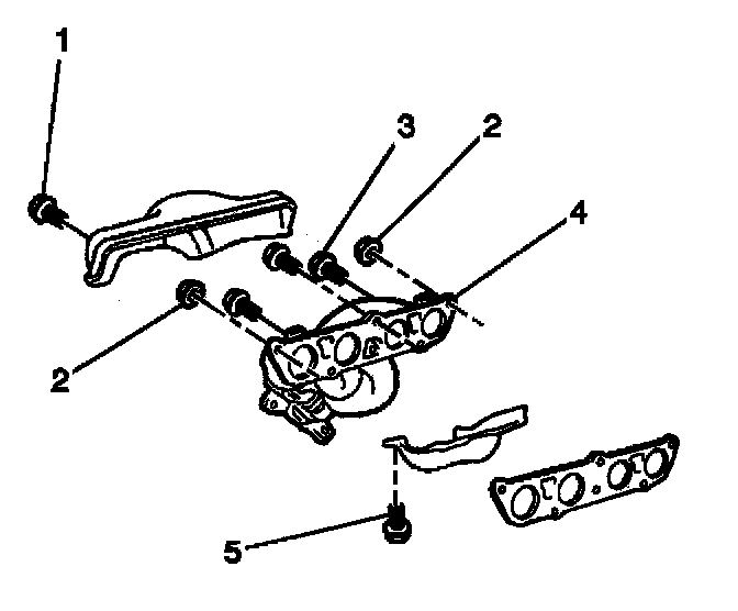 ^ The exhaust manifold (4) and gasket.