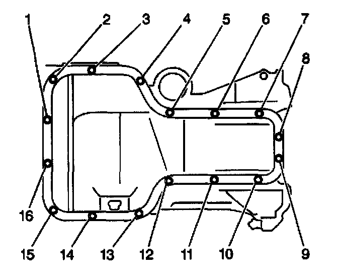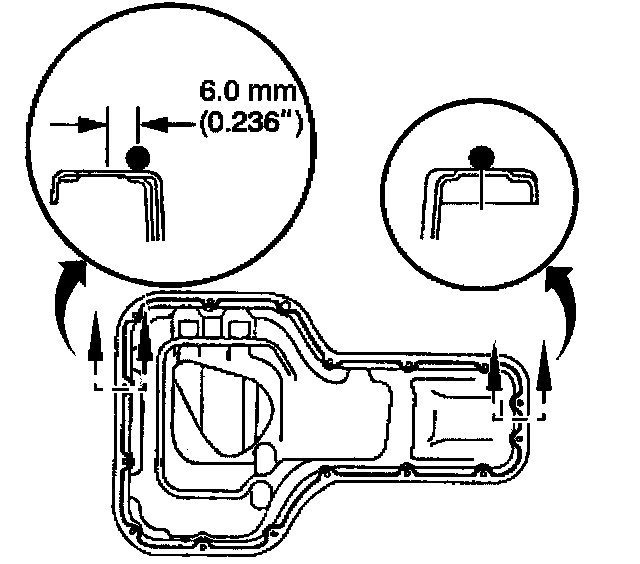 5. Apply a continuous bead of silicon sealant GM P/N 12346240 (Canadian P/N 10953493) or an equivalent, to the engine oil pan mating surface.